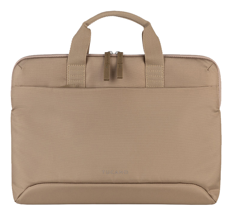Borsa super slim realizzata in tessuto ottenuto dalla plastica riciclata con dettagli in contrasto colore per laptop 14" e MacBook Pro 14". Vano interno unico con orecchie in neoprene per bloccare il device. Il lato anteriore è dotato di una ampia tasca esterna. Tracolla removibile e manici doppi in nastro.