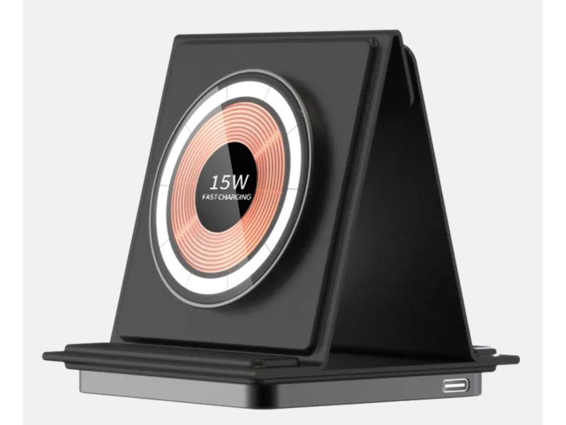 Tappetino di ricarica rapida wireless 3 in 1. Dudùu X-Folding è un tappertino di ricarica wireless dotato di aggancio magnetico che ha la funzione di ricaricare tre device contemporaneamente come auricolari, smartphone e Apple Watch (IOS). Con luce led incorporata. Elimina tutte le prese e i fili in eccesso, scopri la comodità di un prodotto tascabile.