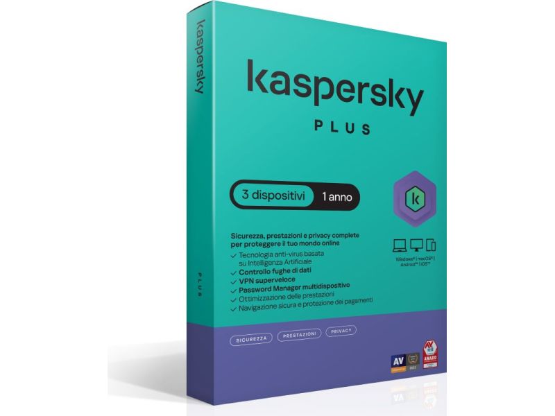 Kaspersky Plus licenza 12 mesi per 3 Dispositivi