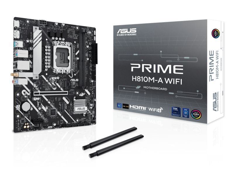 ASUS PRIME H810M-A WIFI. Produttore processore: Intel, Presa per processore: LGA 1851 (Socket V1), Processori compatibili: Intel Core Ultra (Series 2). Tipi di memoria supportati: DDR5-SDRAM, RAM massima supportata: 128 GB, tipo di slot di memoria: DIMM. Interfacce dell'unità di archiviazione supportate: M.2, SATA III, Tipi di unità di archiviazione supportate: HDD & SSD, Livelli RAID: 0, 1, 5, 10. Tipo di interfaccia Ethernet: Gigabit Ethernet, Wi-Fi standard: Wi-Fi 6 (802.11ax), Standard Wi-Fi: Wi-Fi 6 (802.11ax). Componente per: PC, Fattore di forma scheda madre: micro ATX, Famiglia di chipset per scheda madre: Intel