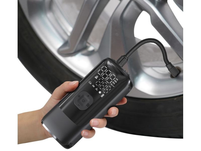 Il compressore d'aria portatile Energizer PAC4000 offre più modalità di funzionamento, 4 unità di rilevamento pneumatici e 1 modalità personalizzata, 3 tipi di ugelli che funzionano perfettamente con una pressione fino a 150 PSI per gonfiare diversi tipi di pneumatici. Le 5 modalità di lavoro (auto/bici/moto/palla/personalizzate) forniscono un funzionamento semplice che può gonfiare in base al valore di pressione preimpostato. Integrato con funzione di spegnimento automatico, PAC4000 smetterà di gonfiare automaticamente una volta che la pressione dei pneumatici raggiunge il valore preimpostato per un'esperienza utente sicura e affidabile. Il display digitale LCD mostra la pressione corrente, la pressione preimpostata e la selezione della modalità in modo chiaro a colpo d'occhio. Dotato di power bank e funzione luce LED, PAC4000 può ricaricare i tuoi dispositivi in caso di necessità urgenti e illuminarsi in luoghi bui, indipendentemente dal fatto che tu stia viaggiando all'aperto o lavorando in garage. Il design compatto ti consente di trasportarlo ovunque e in qualsiasi momento. PAC4000 è la soluzione potente per la tua vita quotidiana in qualsiasi momento.
