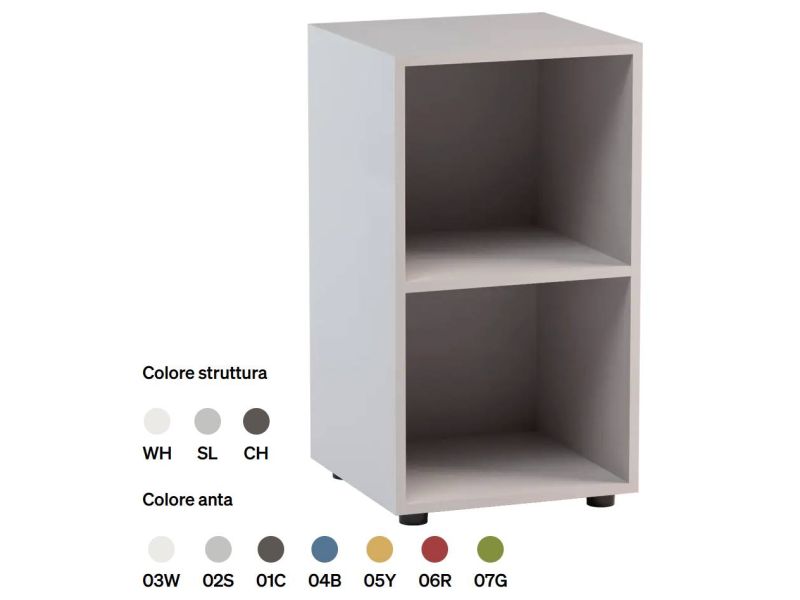 Armadio libreria alta a giorno superiore con 2 ante inferiori (90 × 46,3 × 196,7 cm) vari colori