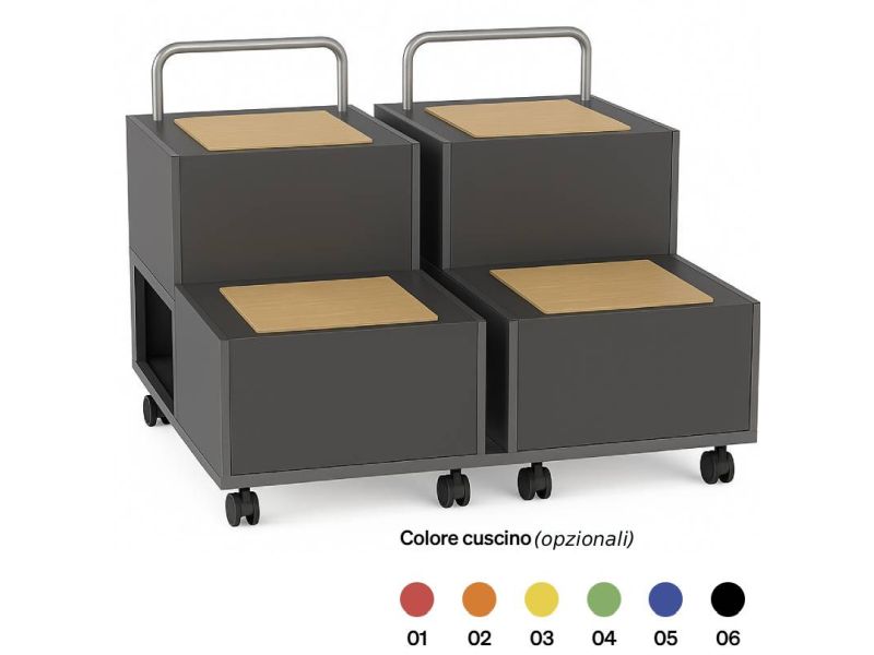Tribunetta per debate su ruote con vani laterali ideale per 4 posti (cuscini vari colori opzionali)