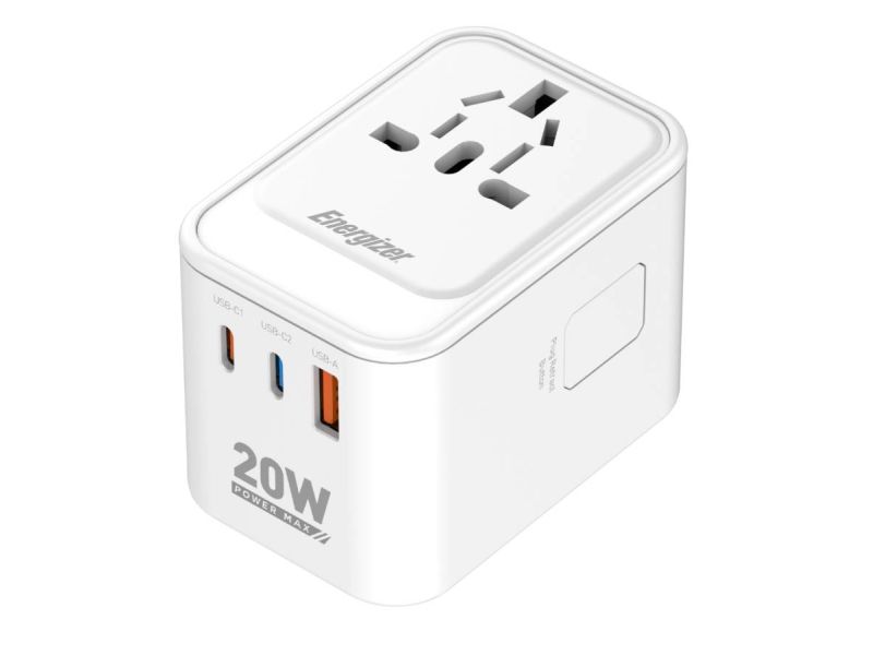 Presa da viaggio internazionale Energizer ETC200 20Watt PD 2× Usb-C e 1× Usb-A Travel Plug