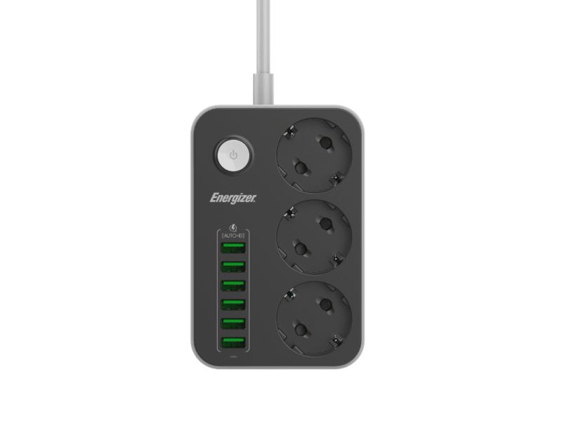 Energizer EPB2500W01EU prolunghe e multiple 2 m 3 presa(e) AC Interno Bianco, Nero