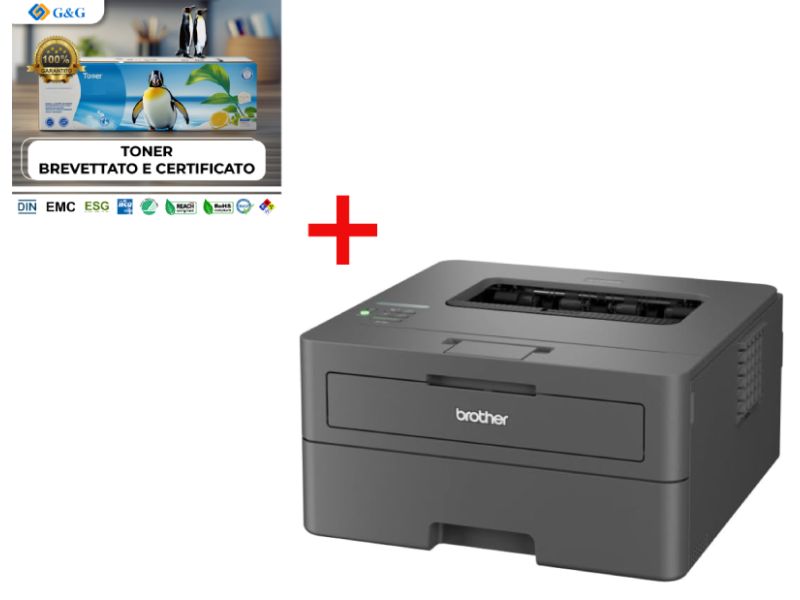 Bundle Stampante Laser Mono A4 Brother HL-L2445DW Wi-Fi Fronte/Retro Automatico 32ppm inclusi 2 Toner Compatibile G G TN2510XL