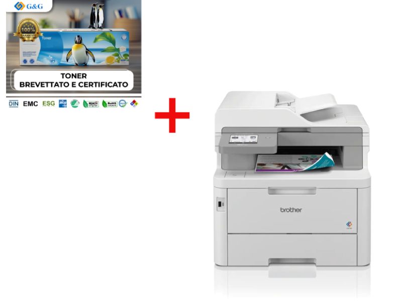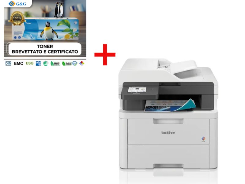 Bundle Multifunzione Laser Colori A4 Brother DCP-L3560CDW Wi-Fi e LAN Fronte/Retro Automatico 26ppm inclusi Kit Toner Nero e Colori Compatibili G G