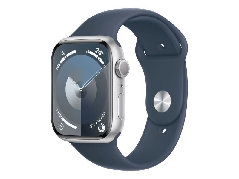 Apple Watch Series 9 GPS Cassa 45mm in Alluminio Argento con Cinturino Sport Blu Tempesta - M/L