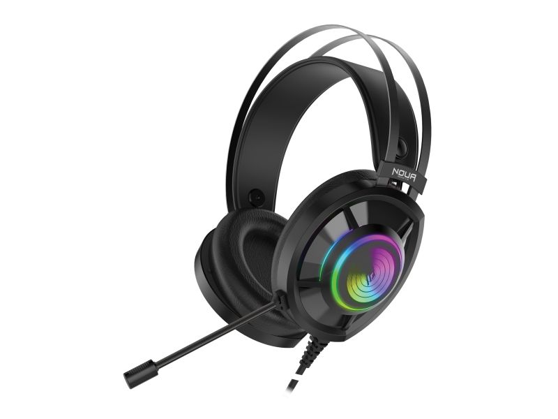 Cuffie Gaming NOUA Echo Usb Headset - Con Microfono Flessibile Omnidirezionale & Audio Surround Virtuale 7.1 - Illuminazione Rainbow Auto - Colore Nero