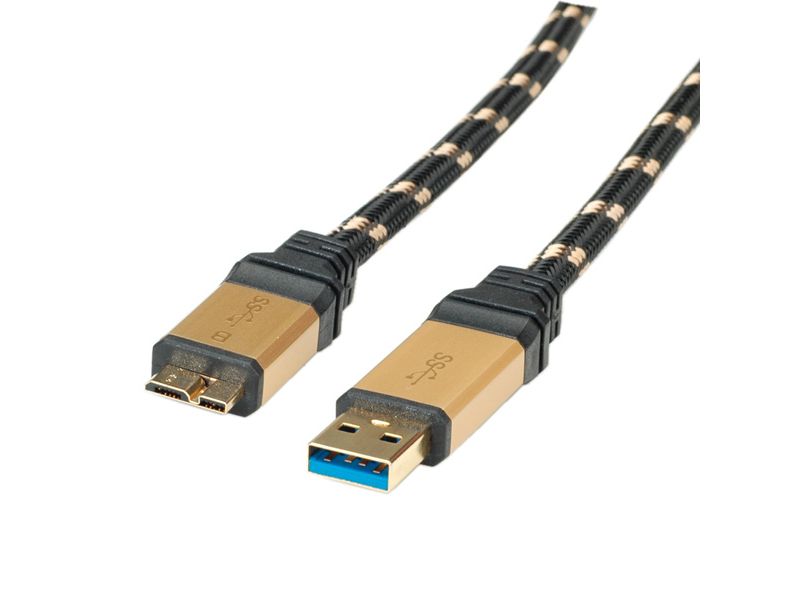 ROLINE 11.02.8878 cavo USB USB 3.2 Gen 1 (3.1 Gen 1) 0,8 m USB A Micro-USB B Nero, Oro