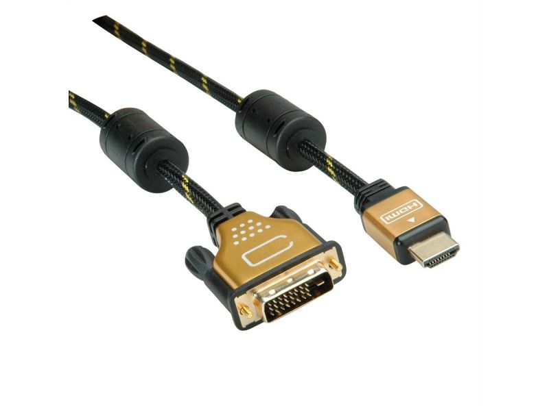 ROLINE 11.04.5890 cavo e adattatore video 1 m HDMI DVI Nero, Oro
