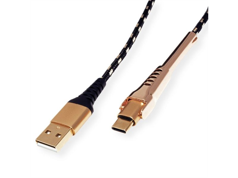 ROLINE 11.02.8920 cavo USB USB 2.0 1 m USB A USB C Nero, Oro