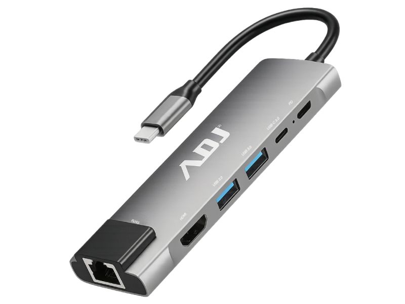 Adj Docking Station Type C Multiport 6in1 2x Usb3.0 2x Hdmi 2xRj45 USB-C Power Delivery e Data