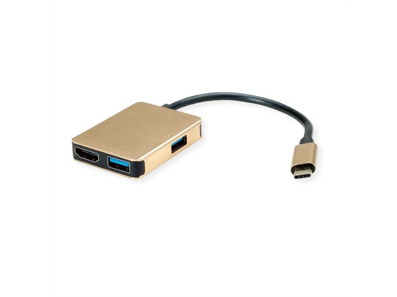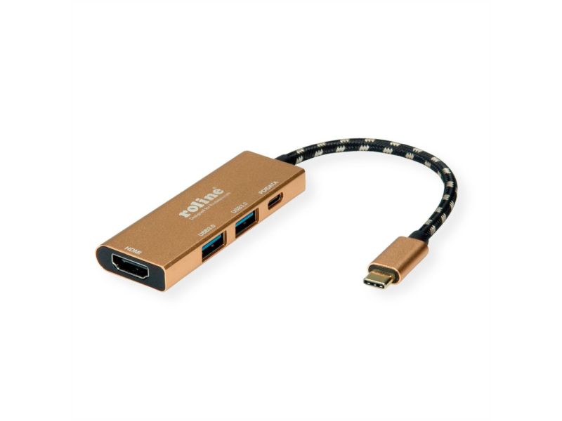 ROLINE 12.02.1120 replicatore di porte e docking station per laptop Cablato USB 3.2 Gen 1 (3.1 Gen 1) Type-C Oro