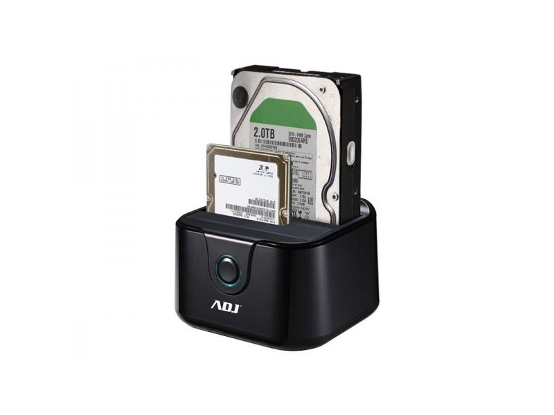 Docking Station ADJ AH01T Double HDD per Hard Disk SATA da 2.5" e 3.5" USB 3.0 ad Alta Velocità - con funzione di clonazione HDD inclusa - Office Series - Colore Nero