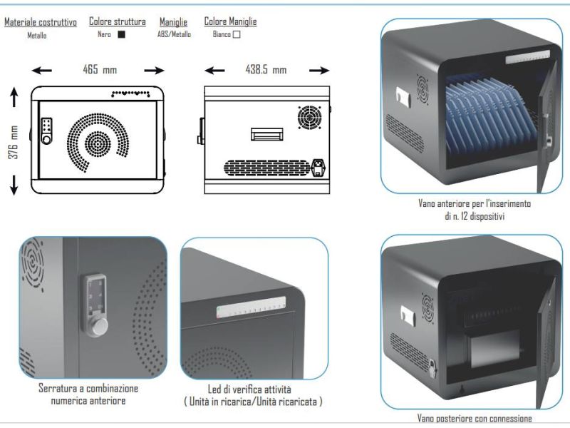 TROLLEY TEACH Unità mobile ricarica e alloggiamento TeachBusSix per 36 dispositivi (notebook 15,6"/tablets/netbook) completo di PMS&cooling system RJ45