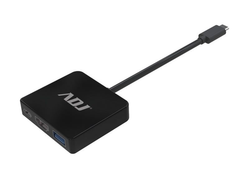 Hub HB019 Dock Type-C Multiport ADJ - 1 Porta USB Type-C Power delivery (100W) + 1 Porta HDMI 4K + 1 Porta USB Type-A 3.1 - Cavo con connettore Type-C - Colore Nero