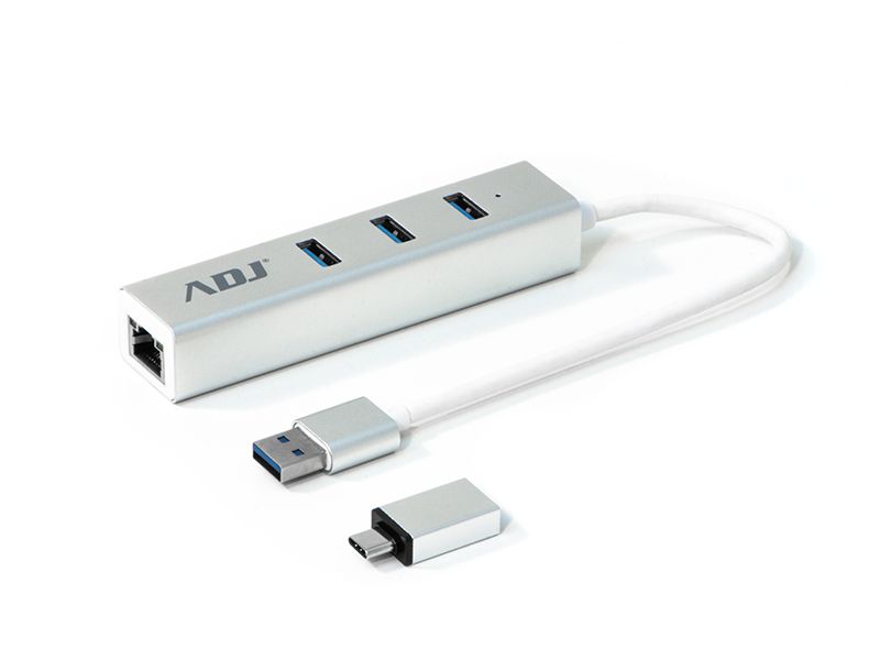 ADJ HUB USB 3.0 Adattatore Type-C SL 3 porte USB 3.0 e RJ45 Gigabit con adattatore USB-C incluso