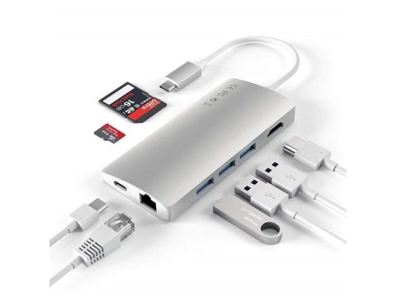 Satechi ST-TCMPHS replicatore di porte e docking station per laptop USB 3.2 Gen 1 (3.1 Gen 1) Type-C Argento