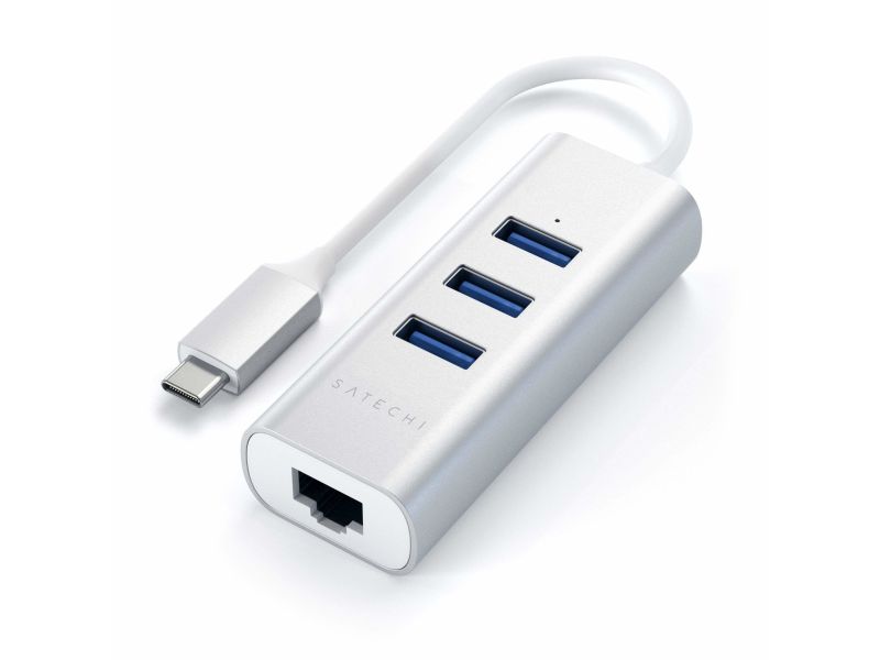 Satechi Typ-C 2-in-1 USB 3.0 Aluminium Hub mit 3 USB-Anschlüssen und Ethernet Anschluss (Space Grau)