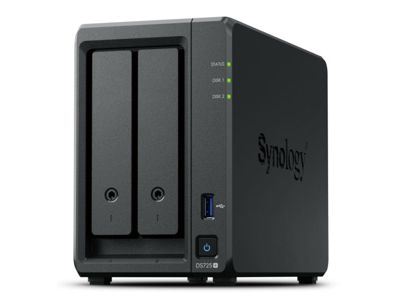 Synology DiskStation DS725+ server NAS e di archiviazione Ryzen Embedded R1600 4 GB DDR4 con incluso hdd 32TB (2x16tb) Nero