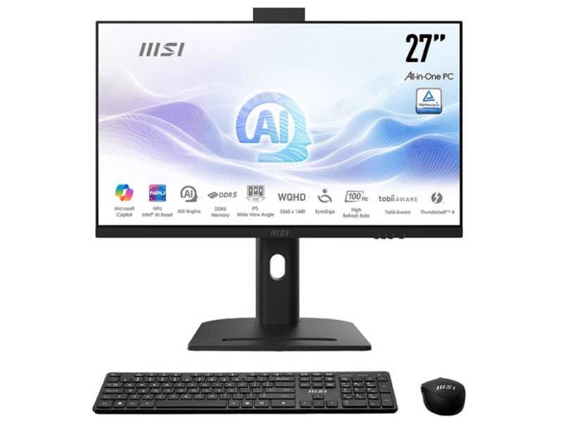 Pc All in One Msi Modern AI lcd ips 27" WQHD cpu Intel Ultra i7-155U ram 32gb ssd 1tb Windows 11 Professional colore Nero garanzia 2 anni