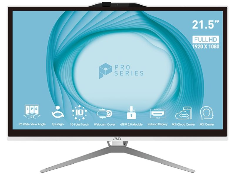 Pc All in One Msi Pro lcd 21.5" antiglare full hd MultiTouch cpu Intel G7400 ram 4gb ssd 128gb Windows 11 Professional colore Bianco