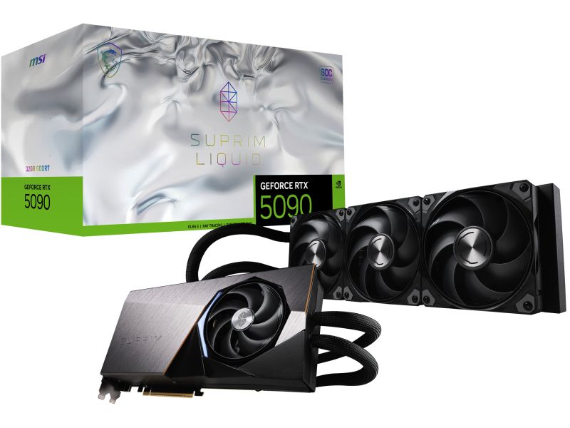MSI SUPRIM GEFORCE RTX 5090 32G LIQUID SOC. Processore grafico / fornitore: NVIDIA, Processore grafico: GeForce RTX 5090. Memoria Grafica Dedicata: 32 GB, Tipo memoria adattatore grafico: GDDR7, Ampiezza dati: 512 bit. Risoluzione massima: 7680 x 4320 Pixel. Versione DirectX: 12 Ultimate, Versione OpenGL: 4.6. Tipo interfaccia: PCI Express x16 5.0. Tipo di raffreddamento: Attivo, Numero di ventole: 3 ventola(e)